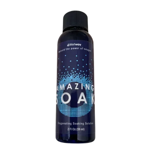 Amazing Soak is a topical solution formulated with oxygen precursors and mineral electrolytes. When diluted in water, it releases dissolved oxygen metabolites that can penetrate the skin and membranes. This process aims to enhance cellular oxygenation, support detoxification, and promote metabolic balance.
